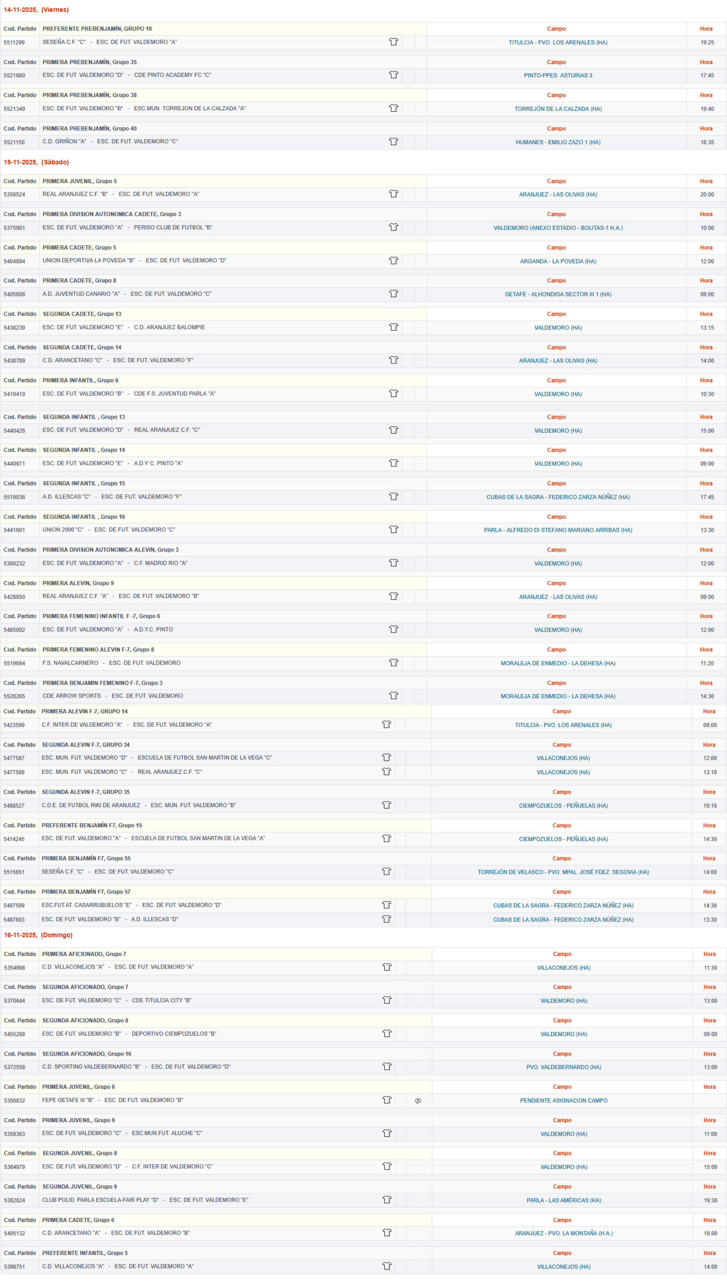 PARTIDOS FEDERADOS JORNADA 14-16 NOVIEMBRE
