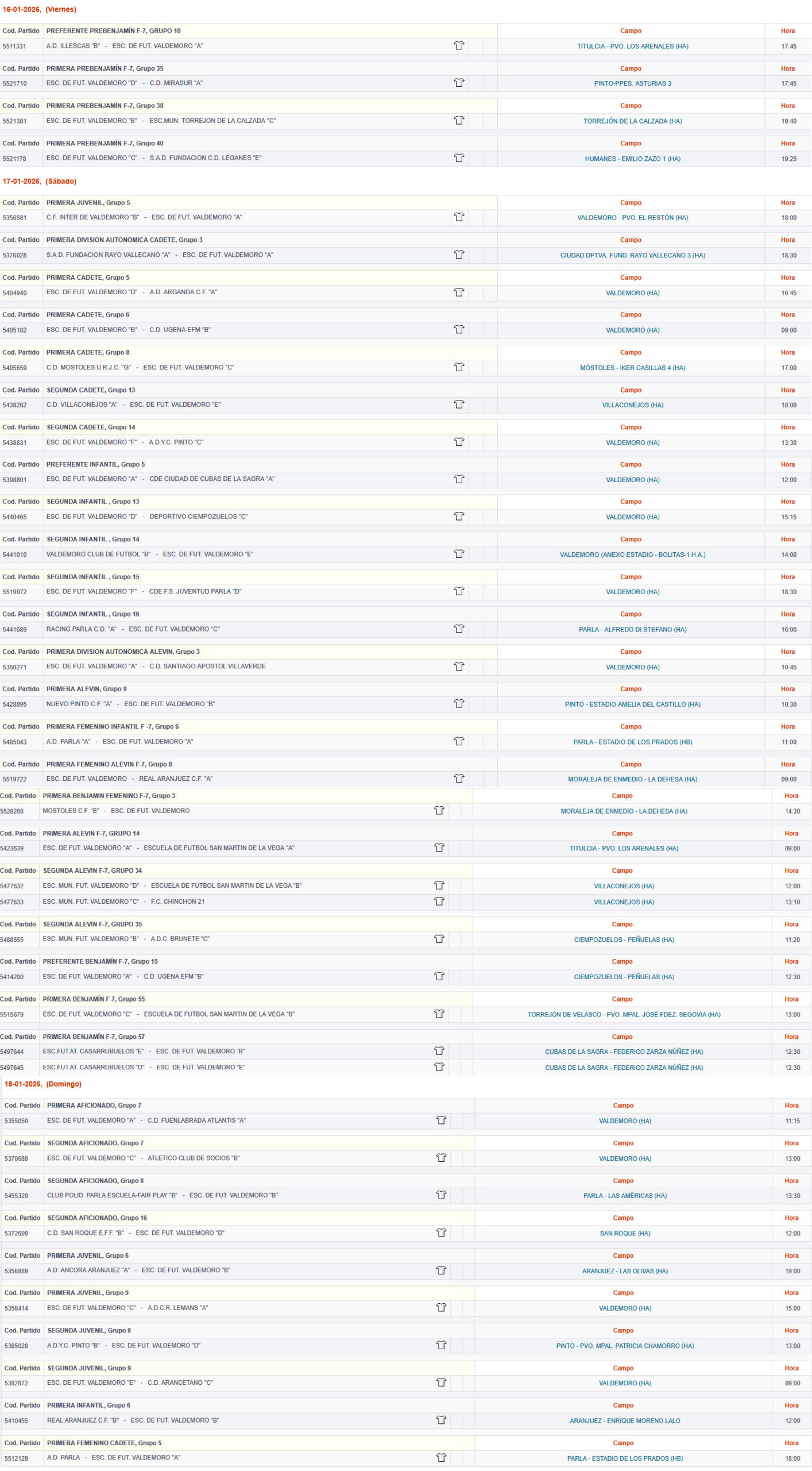 PARTIDOS FEDERADOS JORNADA 16-18 ENERO
