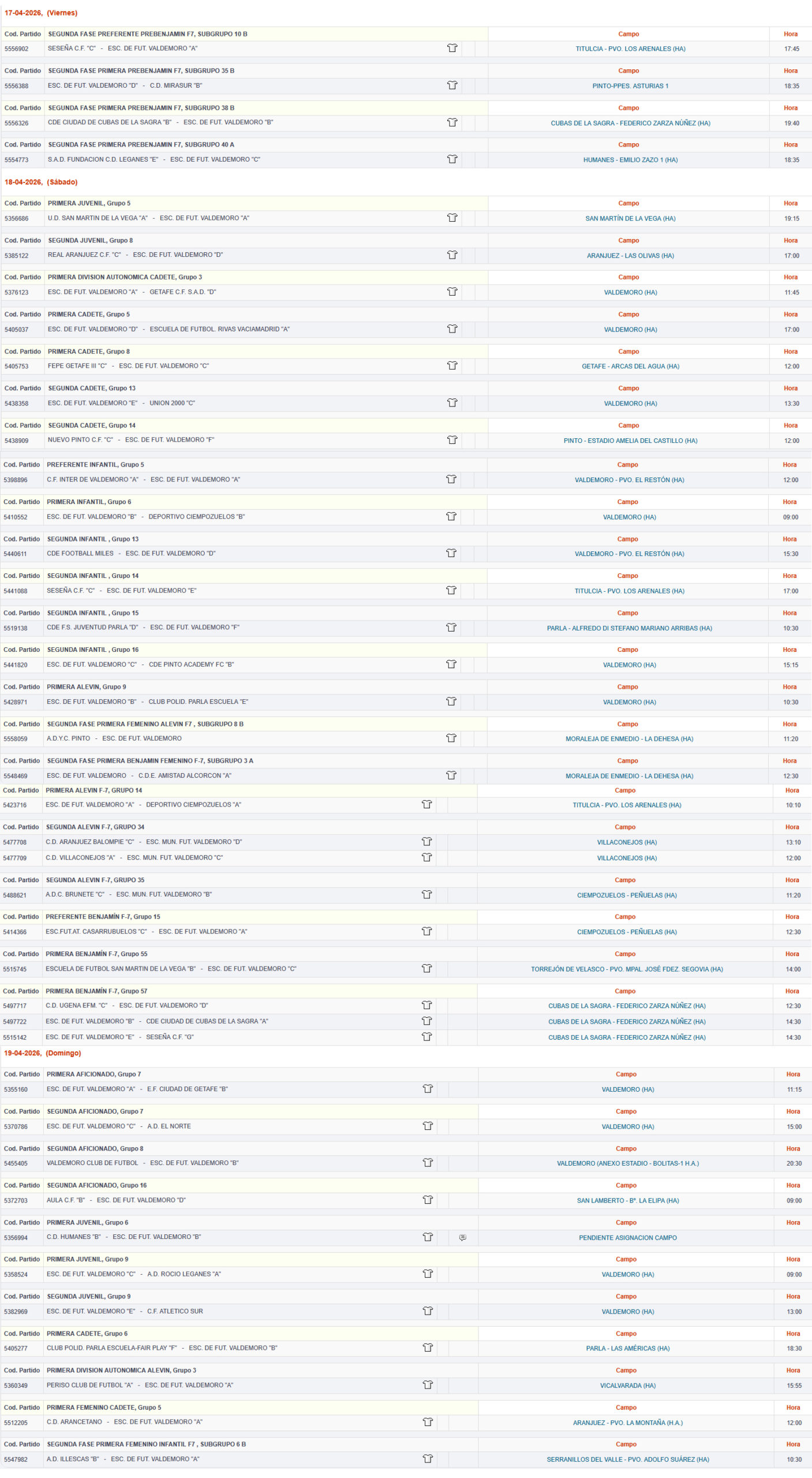 PARTIDOS FEDERADOS JORNADA 17-19 ABRIL